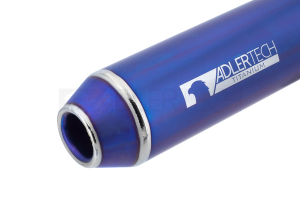 - hochwertige Titanhülse mit lasergraviertem AdlerTech-Schriftzug und Titan-Endkappe, beides lila/blau anodisiert